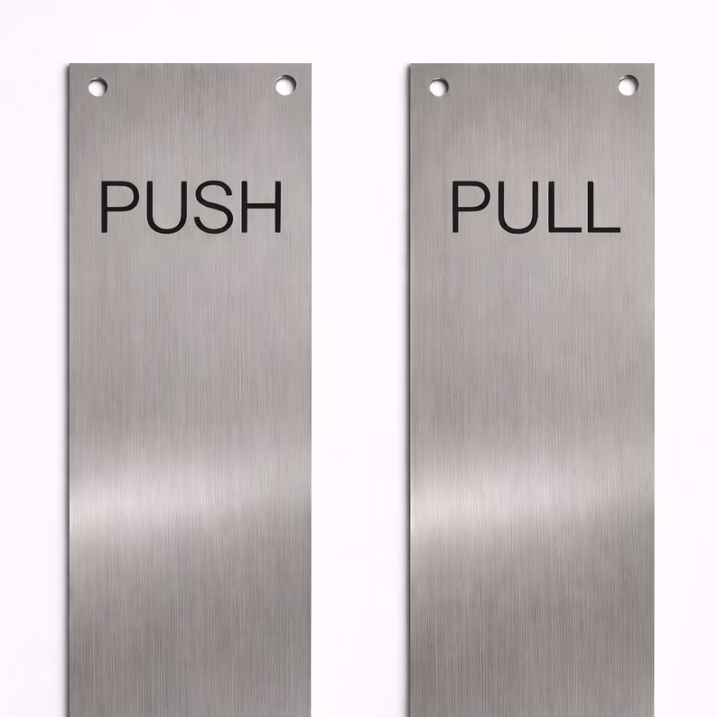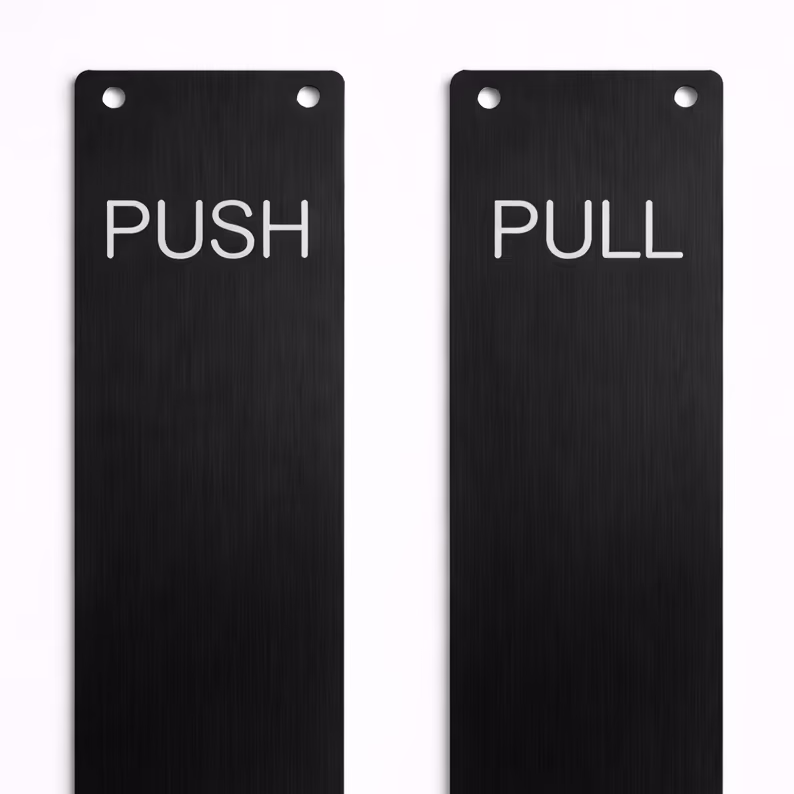Weldit’s engraved PUSH and PULL door plates offer a clear, durable and professional solution for door identification in commercial, architectural and public environments. Precision engraving ensures crisp, legible text that remains long-lasting, even in high-traffic areas.